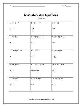 Solving Absolute Value Equations Worksheet Answers